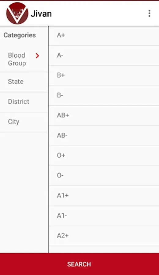 ● Search for particular blood group; fill in complete requirements