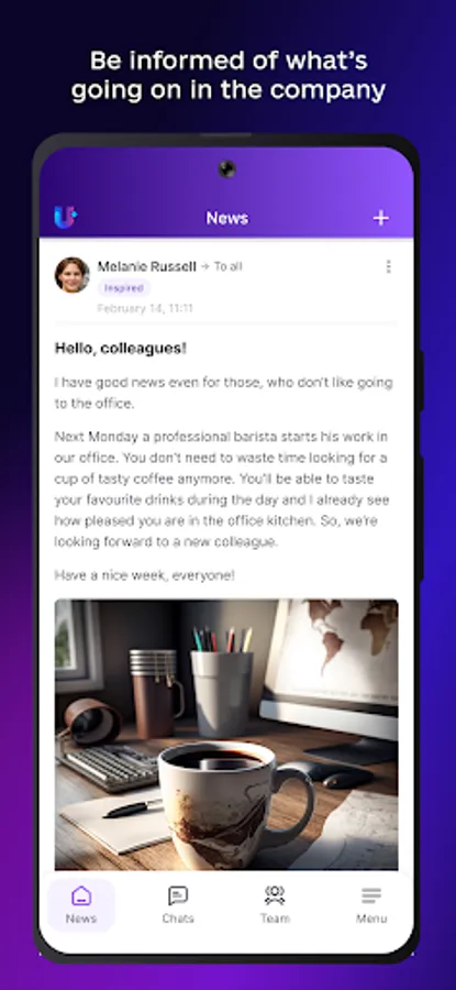 Share important and relevant events in the News Feed with all your colleagues. Keep up to date with the latest company news, important upcoming events, and colleagues' birthdays.