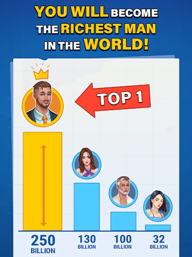Anyone can become rich and conquer the world! Prove to everyone that there is no one better and richer than you in the whole universe. Spend money as you like and enjoy life.