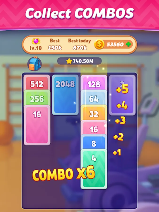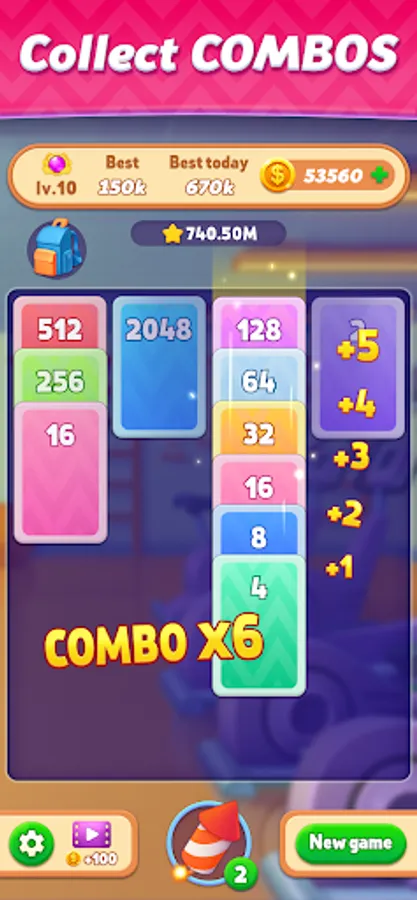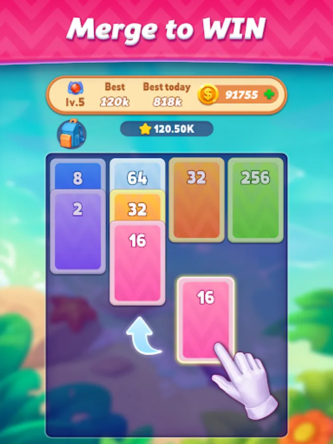 Enjoy super addictive puzzle gameplay and stack your way to a higher score. Reach the biggest number to get more points and become the best. Try to make a combo by merging a whole card stack and score mega points!