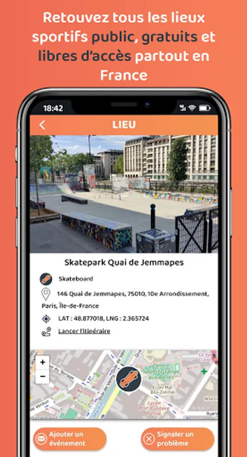 Get access to more than 32,000 public sports venues, free and open access in France (Citystade, skate park, soccer field, basketball court, bowling, table tennis, street workout park, ...)