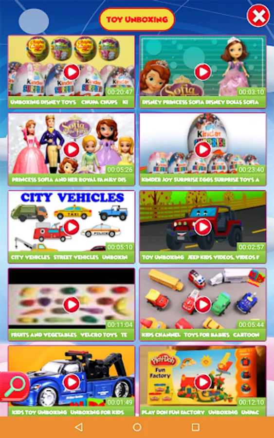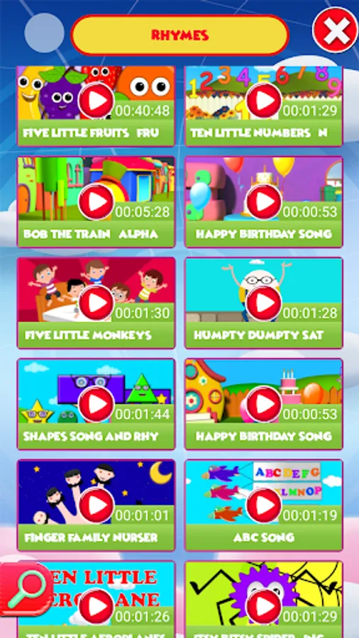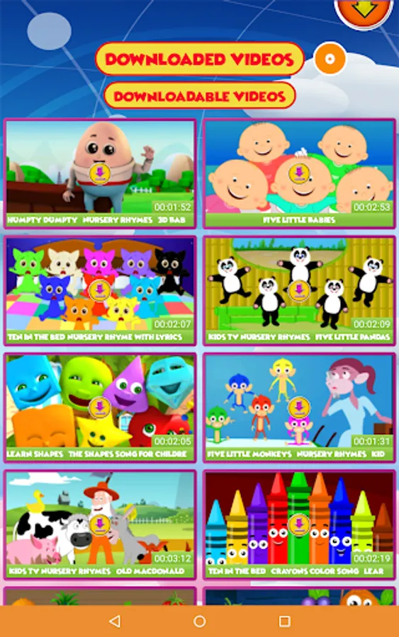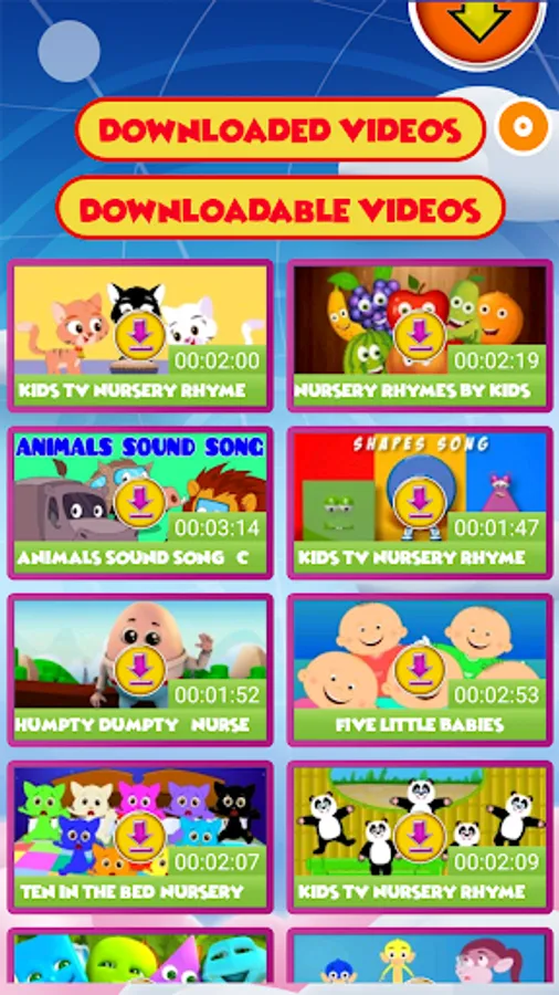 Our efforts are to give a value addition to your children by educating them in a fun way. Here your kids will know to Learn Alphabets, Colors, Shapes, Vehicles, Toy Unboxing and other such things. There is pool of 15000+ videos to watch from in the Application. The user can at anytime search for their favorite rhyme in the app, add the videos to favorites / playlist.