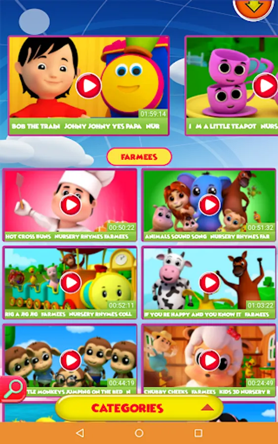 Nursery Rhymes Kingdom App strives to bring to you the entertaining video content over the Internet and presented by the most popular animated characters like Bob the Train, Bao Panda, Farmees, Little Tree House and more.