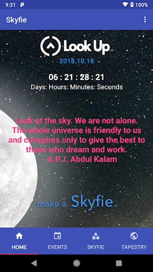 Built for the Look Up movement, the app is live now and the Sky Tapestry will be filled with the world’s commentary October 18. And be available for viewing. But the Tapestry needs your contributions for a real understanding of Earth.
