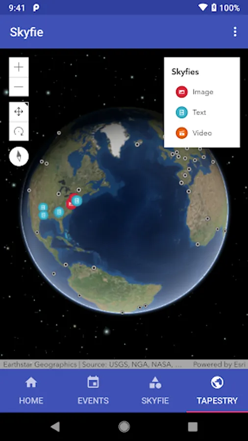 The Skyfies from around the world are woven together to build a Sky Tapestry of humanity’s ideas, hopes, concerns, plans, needs, resources, connecting you to your community and individuals around the world. Skyfies are all synchronized to GMT or Zulu time and displayed at their upload location on this Sky Tapestry, and a digital globe, for viewing in the app.