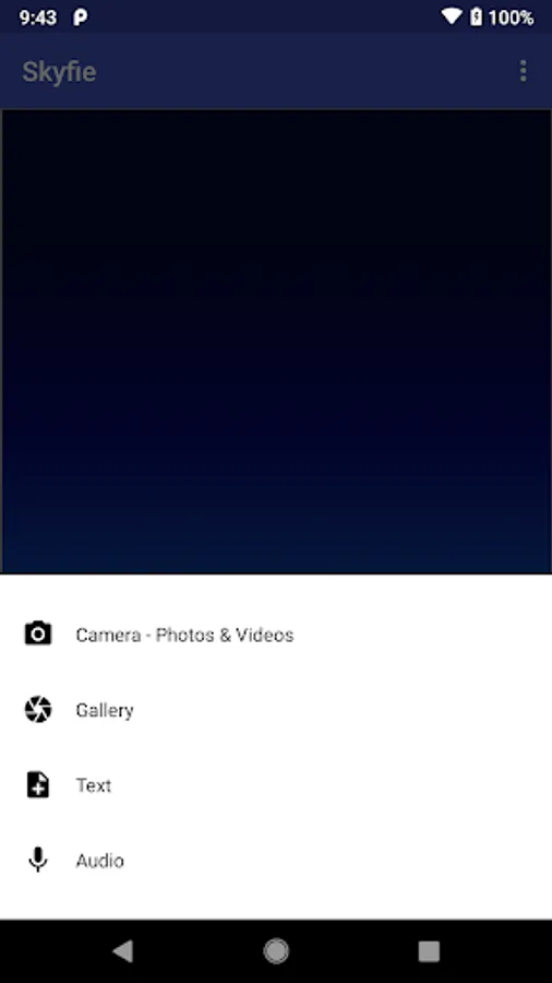Capture, create, express, share and explore what you (and countless individuals worldwide) see and feel when looking at the sky. Intuitive, simple and powerful, the Skyfie app lets you easily, on a single page, generate your message to the world as a photo, video, audio recoding or text and then upload it to an interactive globe of the Earth.