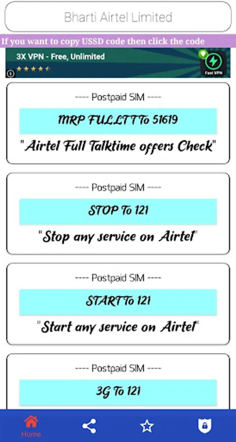 These are Airtel, BSNL, MTNL, VI and Jio, which list USSD codes, which you can use to access knowledge about the service.