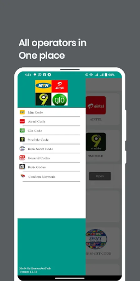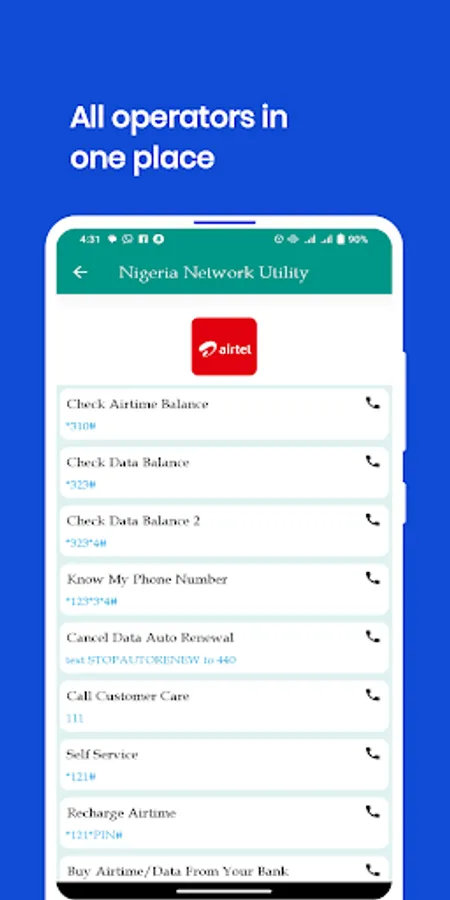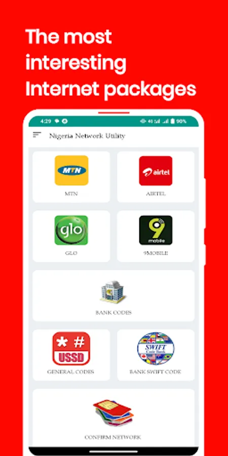 This app allows you to get all Nigeria Network Ussd Code For Data bundle and Plan Subscription, Tariff Migration, etc for all Naija Networks which includes Mtn, Airtel, 9Mobile, and Etisalat.