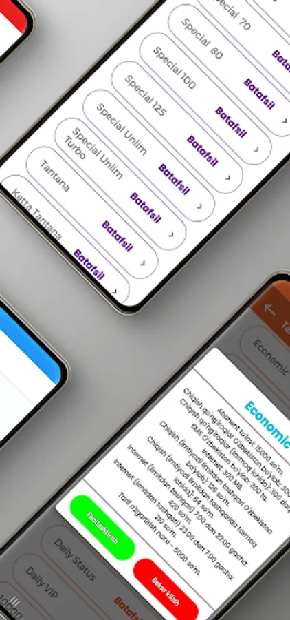 Bundan tashqari, ilovadan foydalanib, siz o'z tarifingizni bilib olishingiz, hamda uni boshqa tarifga o'zgartirishingiz, qo'shimcha daqiqa va SMS'lar sotib olishingiz yoki qo'shimkinchaishing Internet trafik paketlarini soti