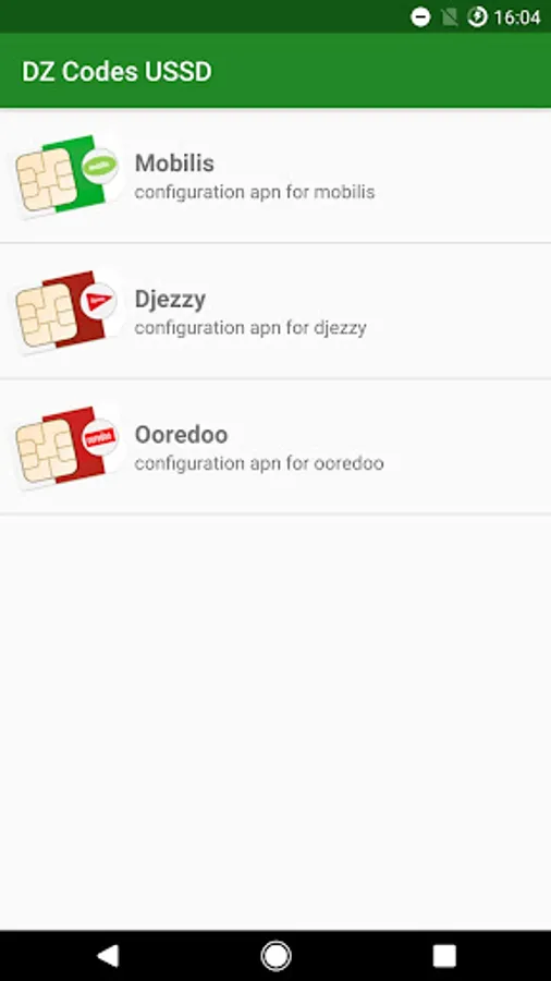 This application contains codes USSD for the three mobile operators in algeria mobilis djezzy and ooredoo: