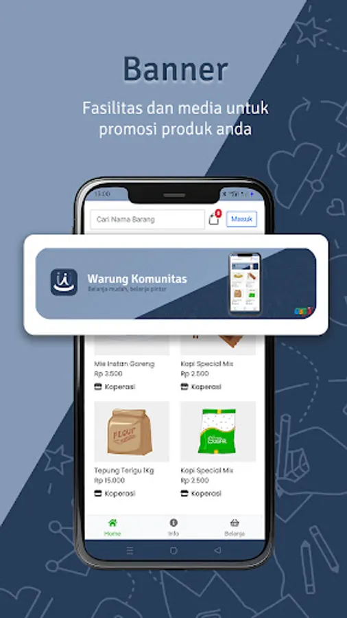 The community stall application is a shop application, where users can make transactions in the form of purchasing goods and digital products owned by an institution/cooperative, using various shopping methods.