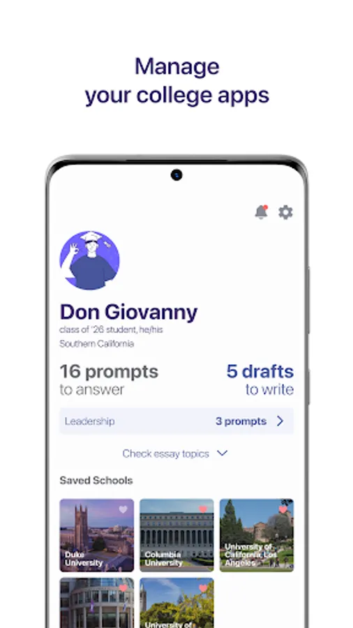 With Ussist, you can focus on your immediate next to-do without being overwhelmed. Get closer to your dream school with a personalized, step-by-step college applications & essay guide.