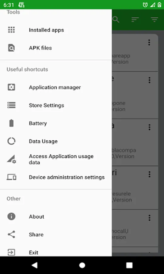 - Useful shortcuts (Application manager,store settings,battery,data usage,