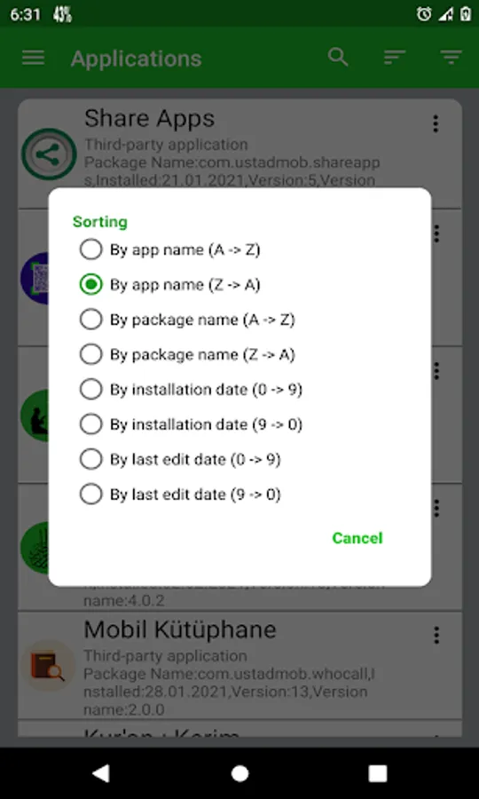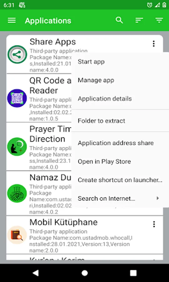 - GET_PACKAGE_SIZE : To get the dimensions of the applications.