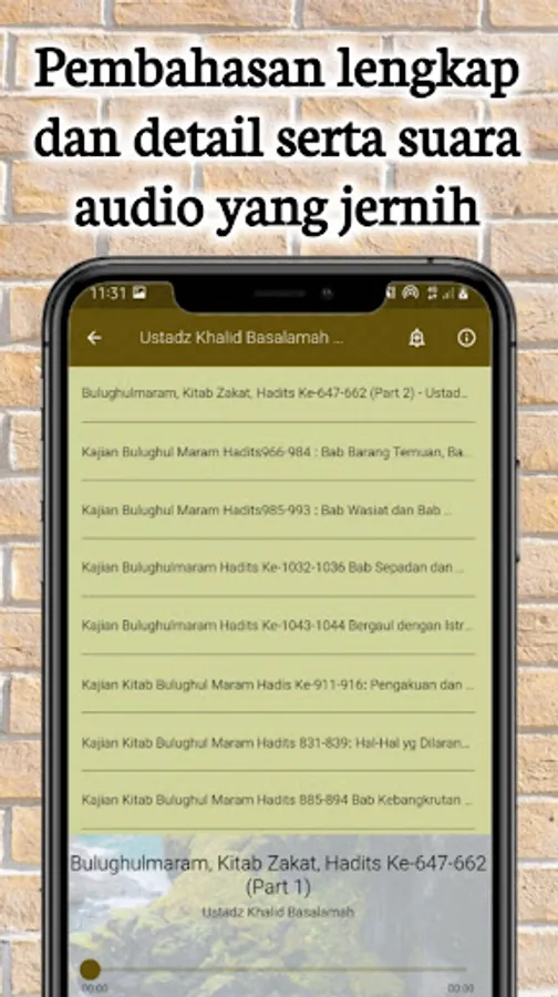 In this case we collect and collect studies in the form of audio from Ustadz Khalid Basalamah with a very detailed and detailed study discussion in the discussion so that it makes it easier for us to understand the book "Bulughul Maram"