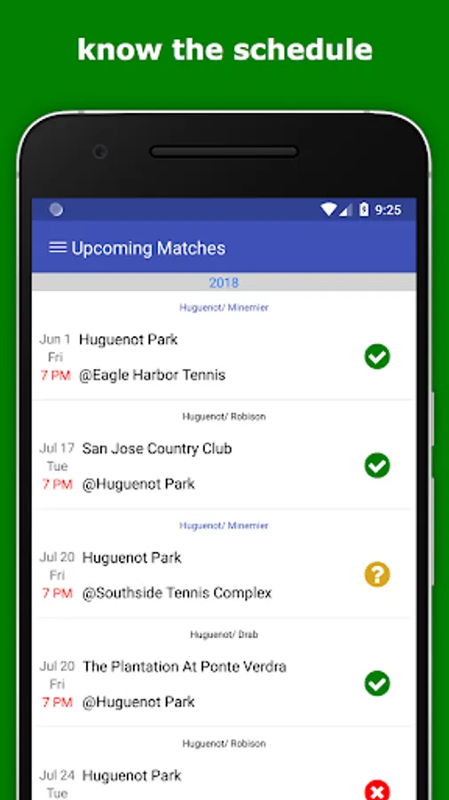 Coordinate all your team logistics with Tennis Team Connect. You'll save hours on administration so you can spend more time on the court! Tennis Team Connect creates seamless communication between players and captains. The app automatically contacts and reminds players, freeing up time for the captain.