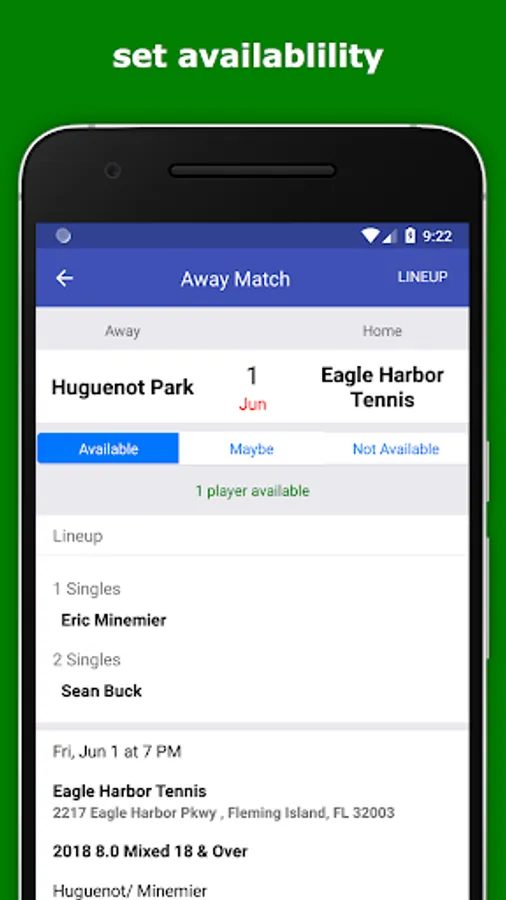- Tennis Team Connect will notify you of upcoming matches and request your availability.
