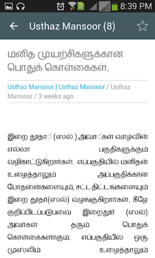 Usthaz M.A.M. Mansoor born 1 July 1958 is a prominent Sri Lankan Islamic scholar, theologian, author, and educator. Usthaz Mansoor widely regarded as one of the most influential Islamic thinkers in the Sri Lankan history. His Arabic language eloquence is hailed above his first language (Tamil), what acclaimed him as the most prominent tafsir scholar in Sri Lanka. He graduated from the University of Naleemiah (Ja'miah Naleemiah) in 1981 and appointed as a lecturer in the same year by the university. He served as a senior lecturer at the time of his retirement after 22 years (1981 to 2002)