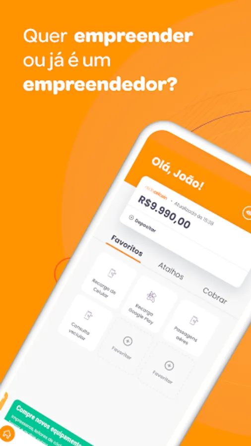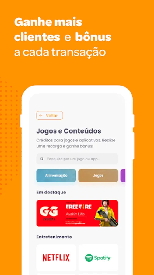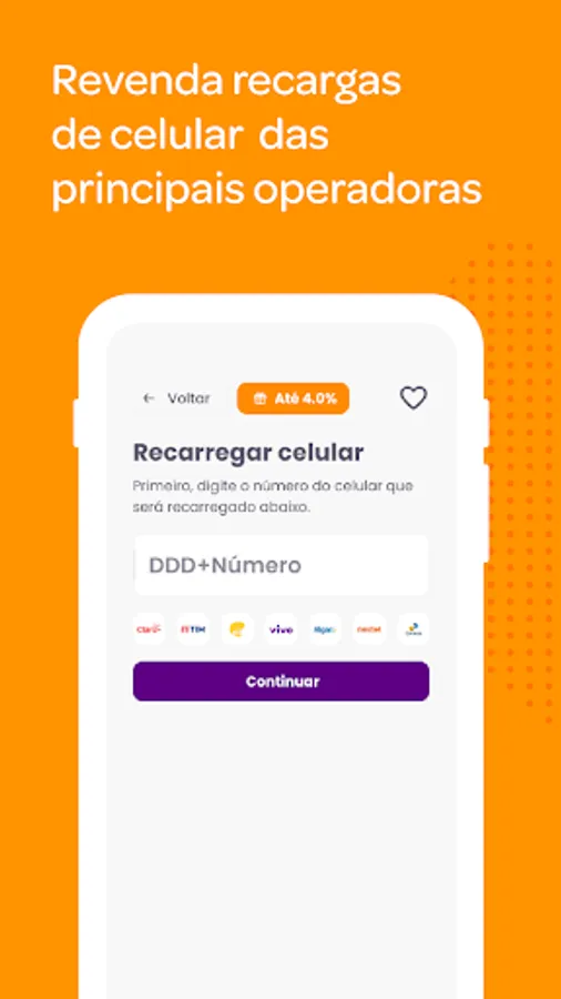 Those who offer cell phone recharge and bill payment services increase their sales by 20%. Download the app and deposit the balance via TED, Pix or bank slip payment.