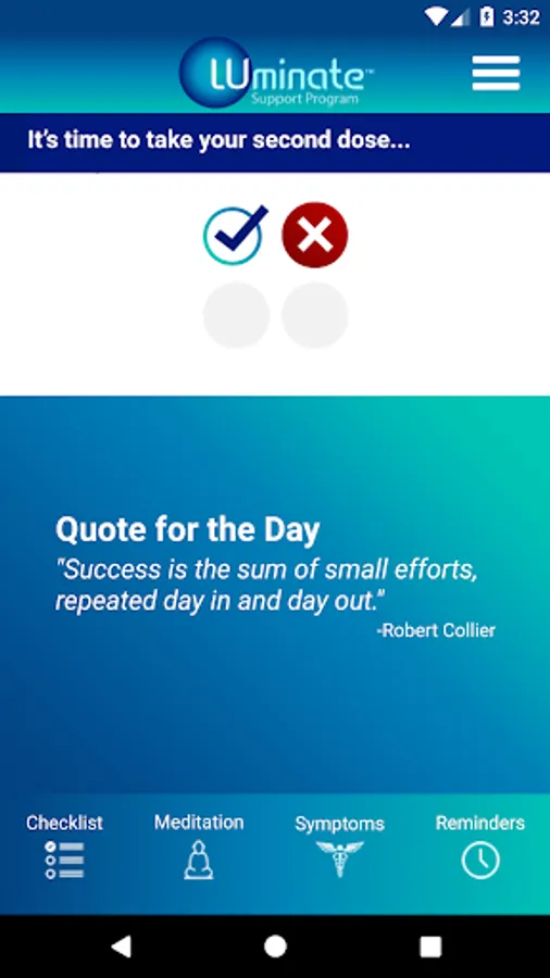 LUminate is the official support app designed to assist patients taking LUCEMYRA (lofexidine) tablets as they go through opioid withdrawal. With customizable dose tracking, timely medication reminders, and daily mes- sages of encouragement, the LUminate app is designed to support patients while they go through withdrawal during each day of treatment with LUCEMYRA. Signup is not required — simply download the app and start immediately!