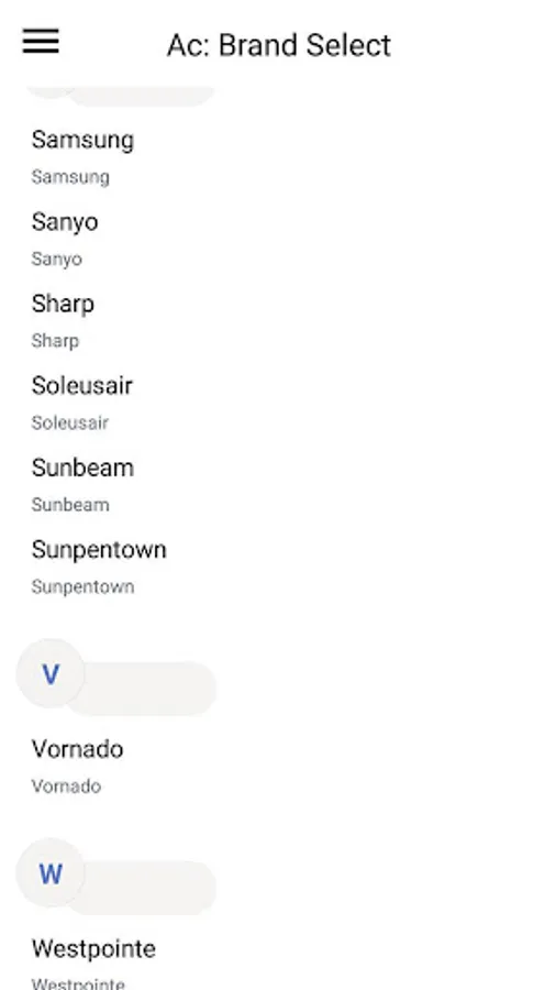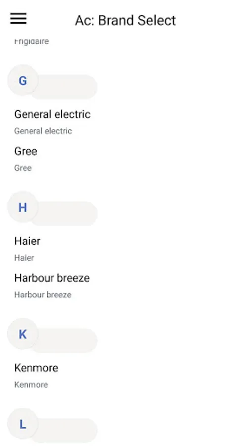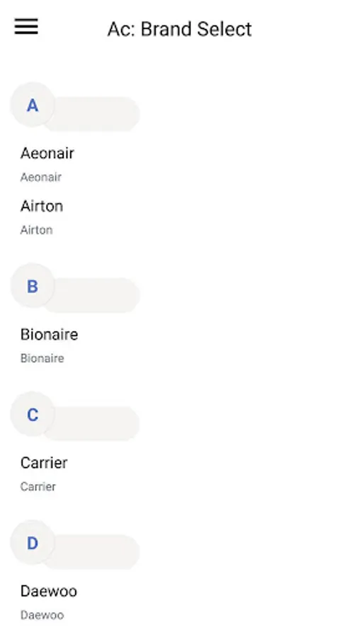 1- After download this Air conditioner Remote Control application, the first step is to choose your AC model in the list.