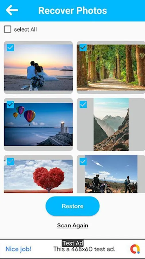1- Recover deleted photos: The app very powerful to restore photos fast and for easy with a high success, but that varies according to the type of device.