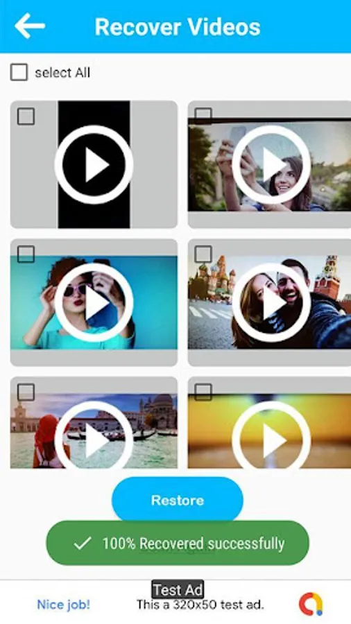 2- Recover deleted video: we try to scan and search all videos format in your phone storage, then we start video recovery at first to get all losted videos but we do not guarantee that it will work for you because some phones remove cache files.