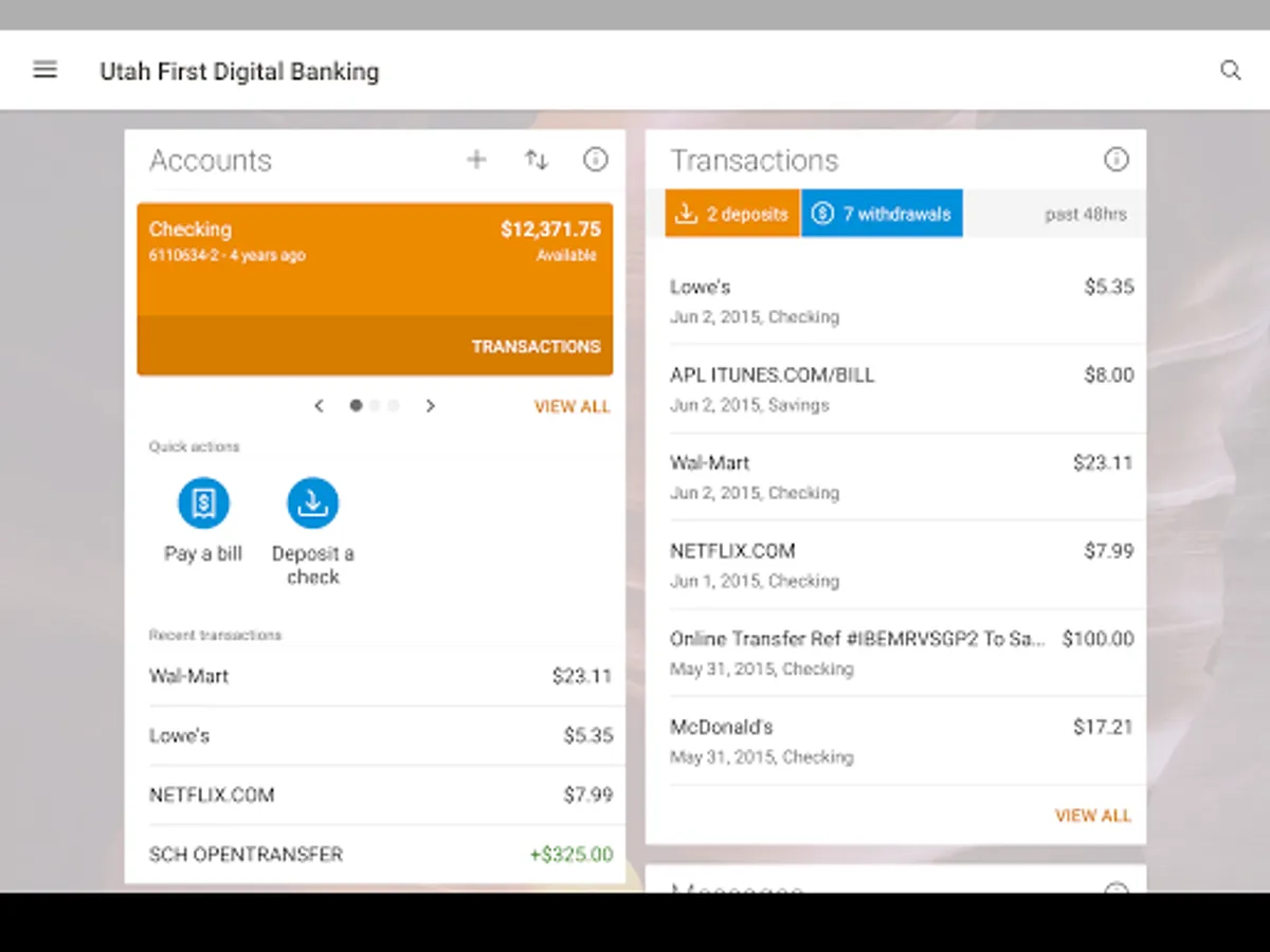 Utah First Digital Banking is your personal financial advocate that gives you the ability to aggregate all of your financial accounts, including accounts from other banks and credit unions, into a single view. It’s fast, secure and makes life easier by empowering you with the tools you need to manage your finances.