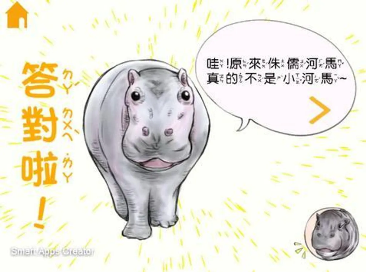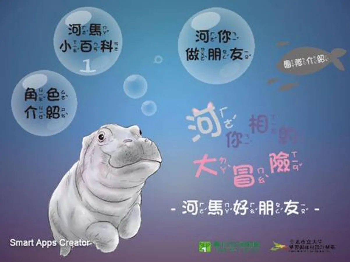 「河馬好朋友」這是一款同時具有知識及遊戲的APP,包含小百科、角色介紹、繪本及互動遊戲這幾個部分,小百科分成圖文與影片裡面有侏儒河馬與河馬外觀的詳細介紹及說明,讓人們經由圖像化學習且一目了然,再者,透過繪本劇情的融入,將侏儒河馬與河馬擬人化,經由生動的繪本故事引人入勝再搭配拼圖遊戲,提高整體的趣味性,並讓大家了解侏儒河馬與一般河馬的區別,透過互動APP來做學習,讓知識更加的生動並且增加學習的動力。