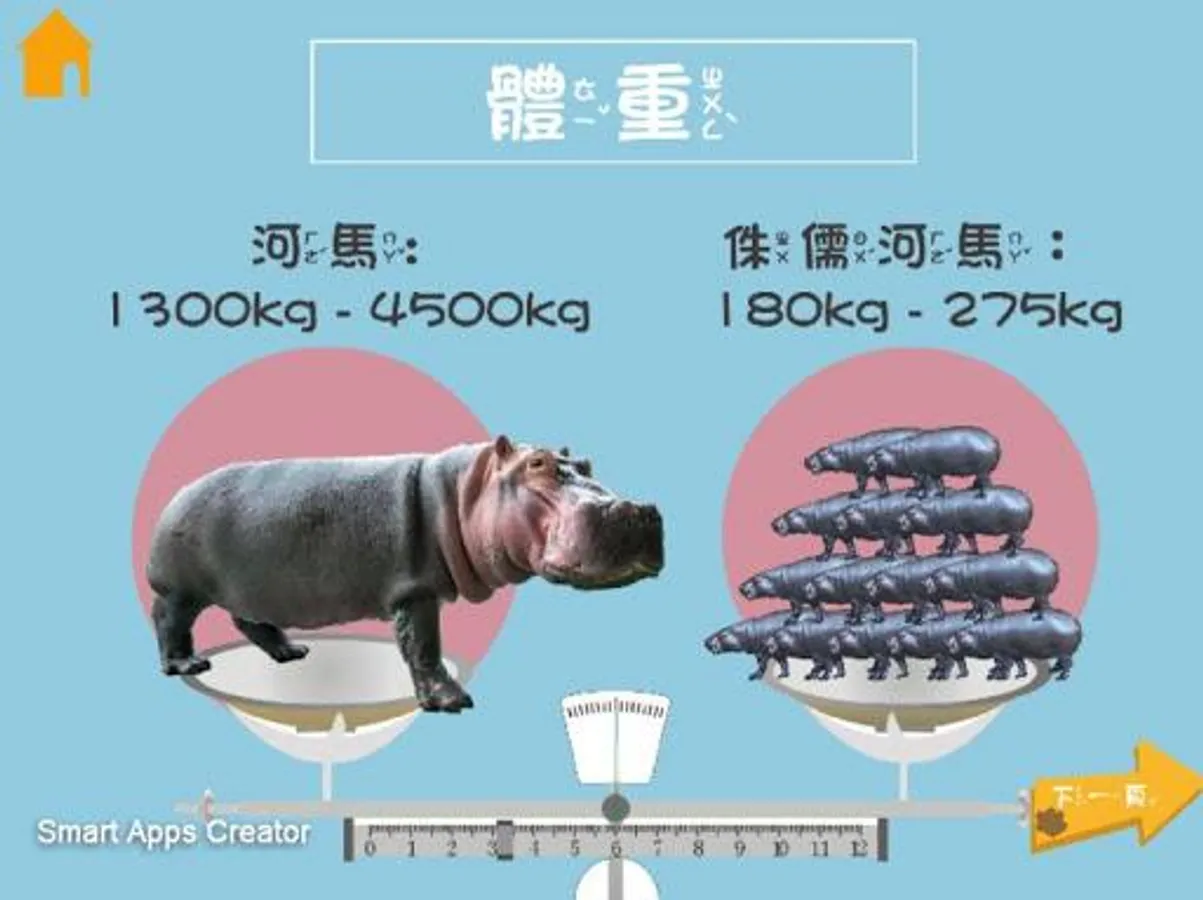 在「河馬小學堂」這個App,首頁有可愛生動的角色介紹、富含知識內涵的小百科、和充滿挑戰性的問答遊戲。隨著故事繪本裡劇情的推進,玩家們可以在挑戰的過程中,更加了解關於河馬與侏儒河馬的相關知識,問答挑戰裡的答案都可以在小百科裡找到解答,透過這樣的挑戰歷程,加深對河馬知識的記憶強度,同時希望能培養孩子對於大自然的關懷與尊重。