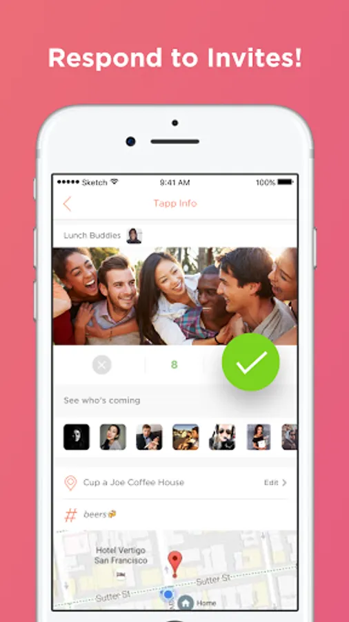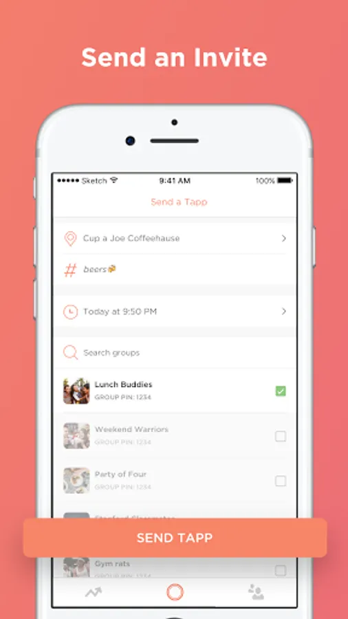 uTapp turns the process of meeting up with friends into a 'Tapp'. With a 'Tapp' of a button, you can let a group of friends know where, when you want to get together; group planning, without group messaging.