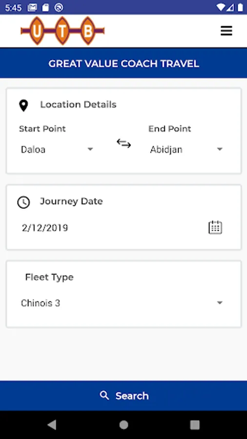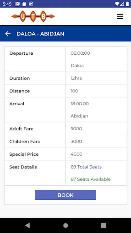 Find buses & route information: Use the app to check availability and price of UTB buses & operators in Cote D'ivoire.