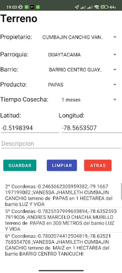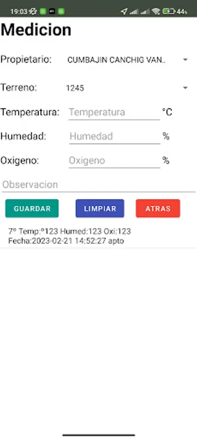 The objective of this application is to be able to help farmers by providing them with a management of their lands while taking temperature, humidity and oxygen readings and being able to keep track of these, to obtain quality products.