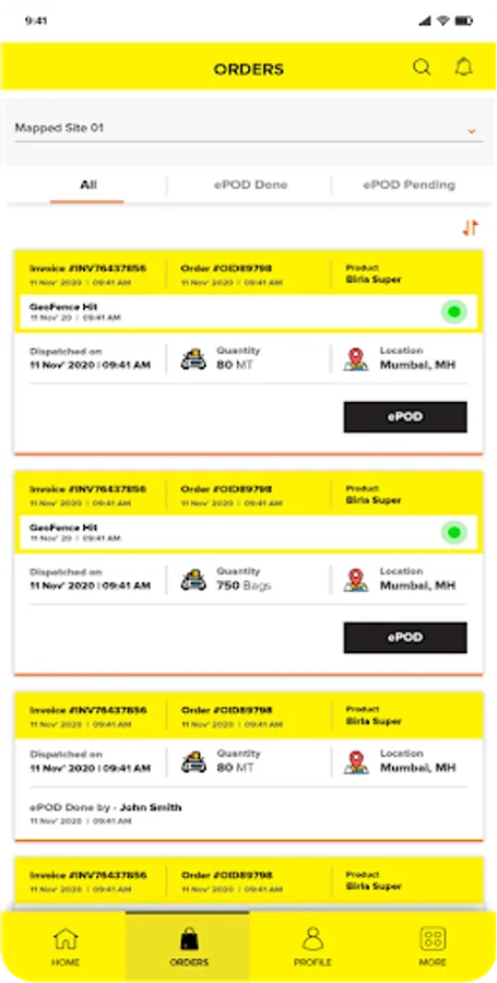 Proof of delivery: Customers can give electronic proof of delivery upon receiving the material which simplifies the flow of information between customers and UltraTech