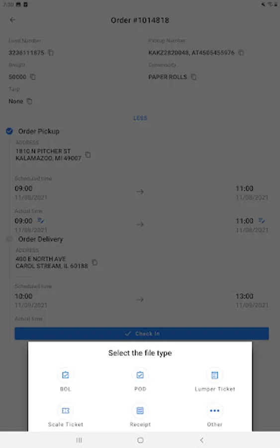 • File Type Selection (BOL/POD, Lumper, Scale Ticket, Invoice, Photo)