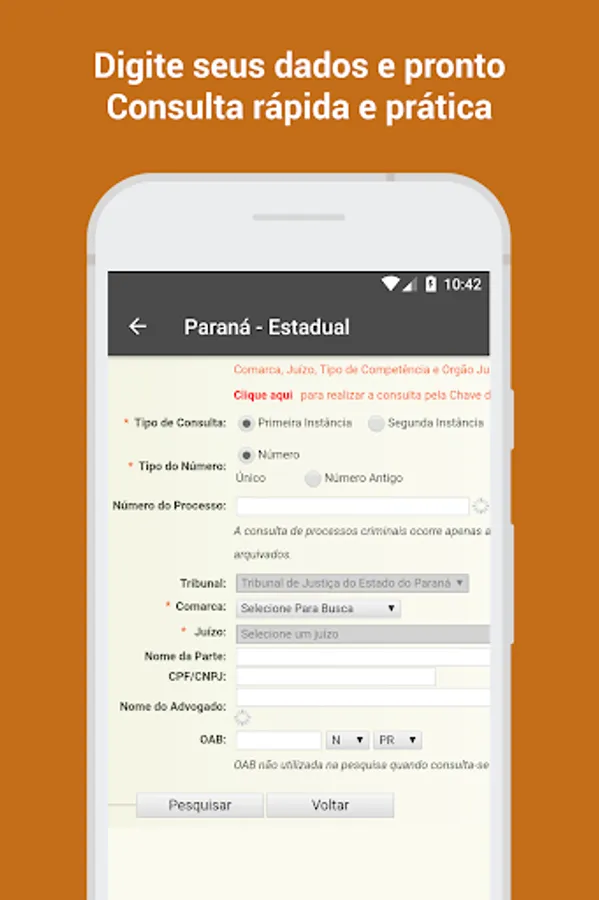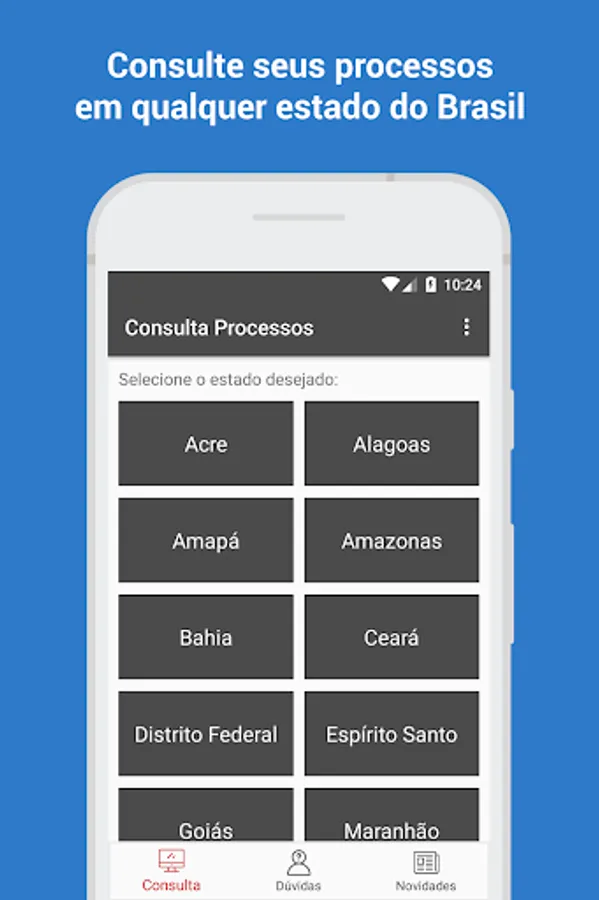 * Attention, the app does not collect any user information, it just redirects the user to the official consultation site of the selected region / court. The function of the app is basically to gather all links in one place in order to make life easier for the citizen.
