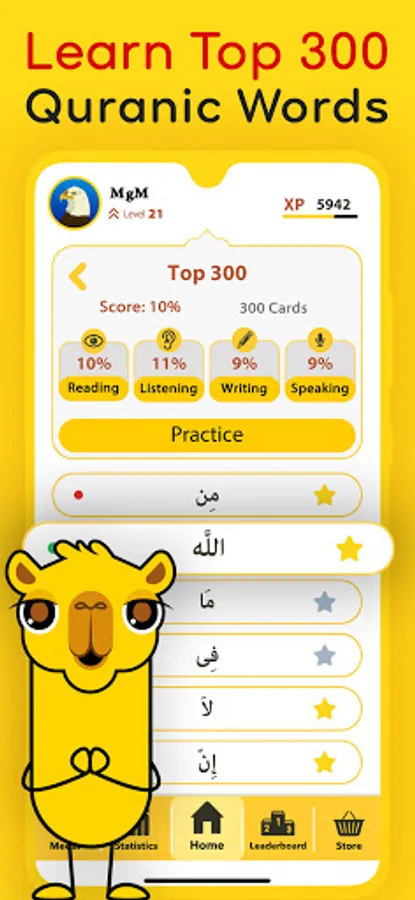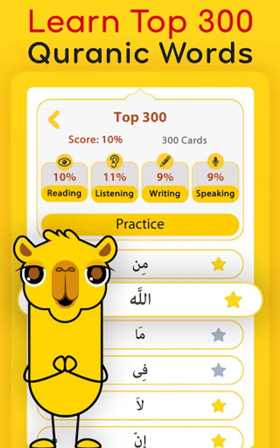 Learn useful vocabulary that is used in the Quran and in daily speech with our unique Word Builder. The Word Builder helps you remember words and identifies which words you need to improve on.
