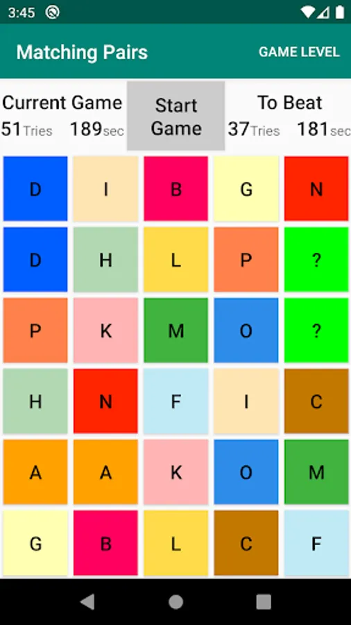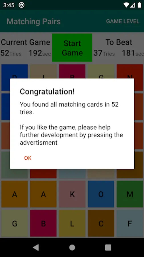 • The number of tries and the time needed in your best game until now is displayed under "To Beat".