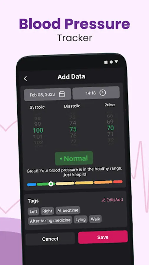- Review the entire history of the blood pressure record, edit, take notes quickly or delete unnecessary data.