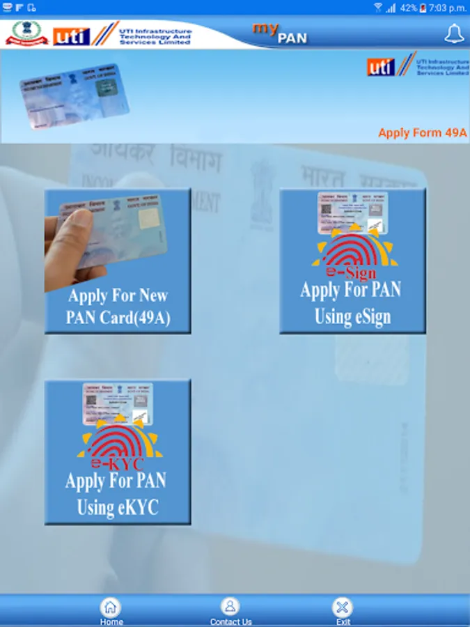 •Apply For New PAN through Mobile App (Form 49A : Physical/e-Sign /e-KYC)