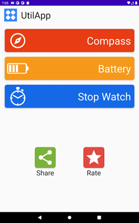 UtilApp is a multiple tools app that provides functionality like compass, battery level and timer.