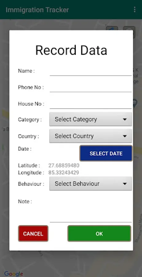 This app helps to record various data and show them in google map so that anyone can view the data.