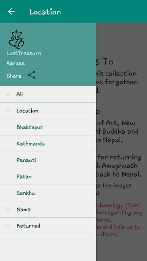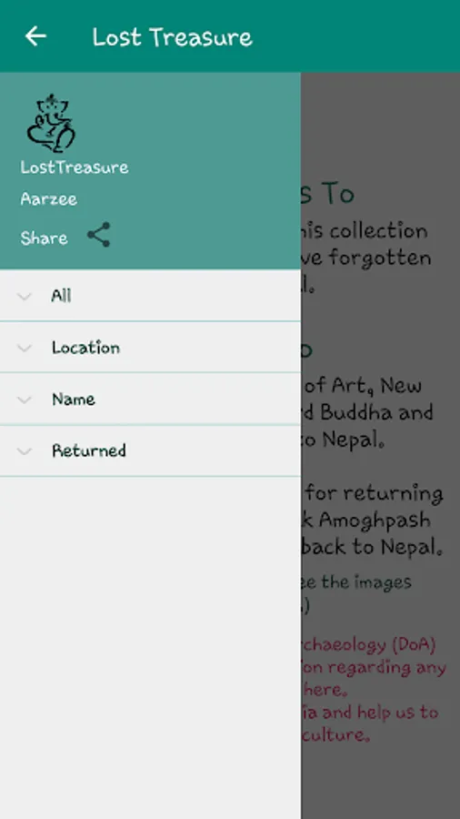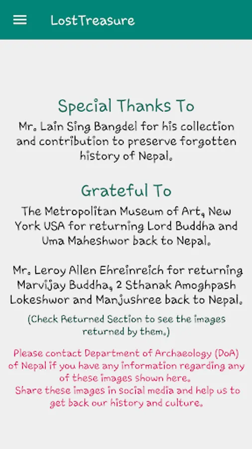 In this application I have tried to show images of those idols with small description. I have tried to inform that these idols are stolen from Nepal and we would be very thankful if any one inform about those idols and help them get back to Nepal.