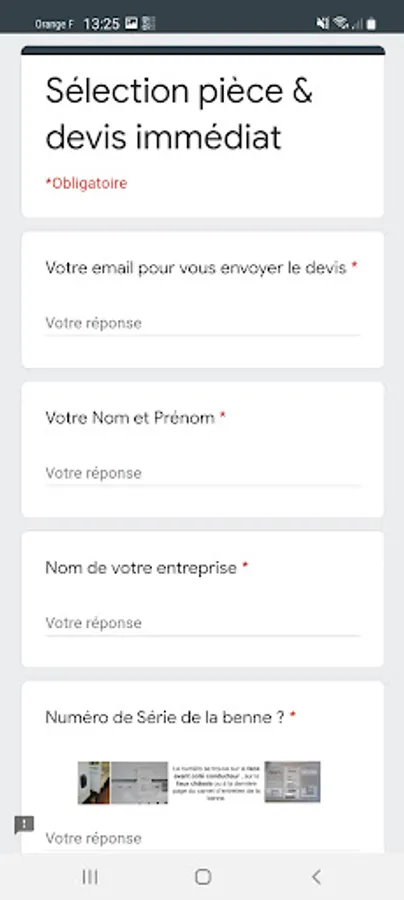 Self-checking application for skips with automatic sending of an estimate for the parts found to be defective.