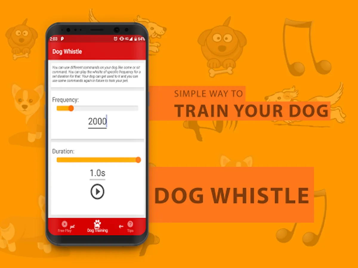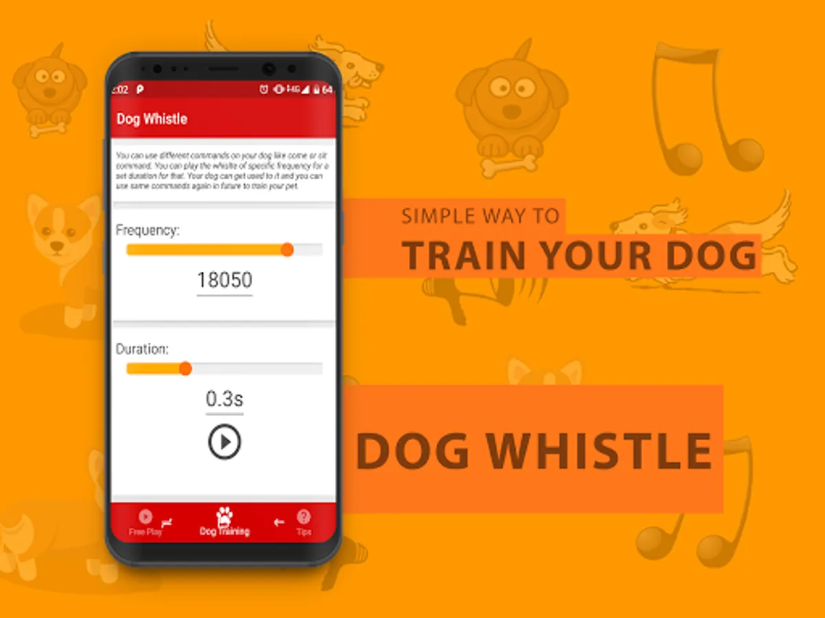Dog whistle - high frequency generator app can help you train your dog in a fun way. In some cases, the dog might not react to the sound. You can try different frequencies for different duration in the dog training section of the app for that purpose.