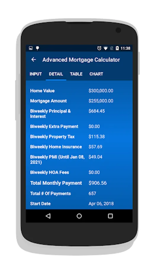 The mortgage calculator will give you a summary of the mortgage including your monthly fees, insurance, taxes, principal, interest and the total monthly or biweekly payment that you need to make. You will also see the payoff date and the total interest, principal as well as total payments that you paid once the mortgage is matures.