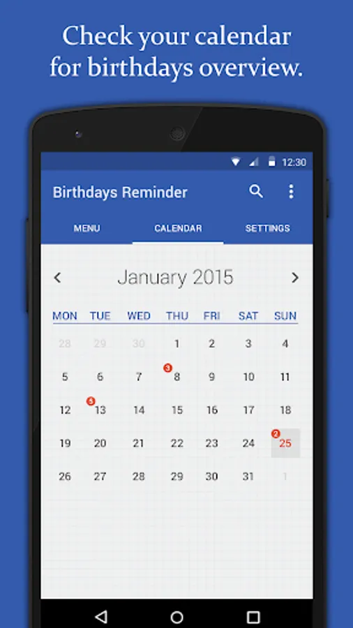 The calendar section will take you up to date about all the imported birthdays. If you don't remember one of your friend's birthday, Birthdays Reminder allows you to search it quickly.