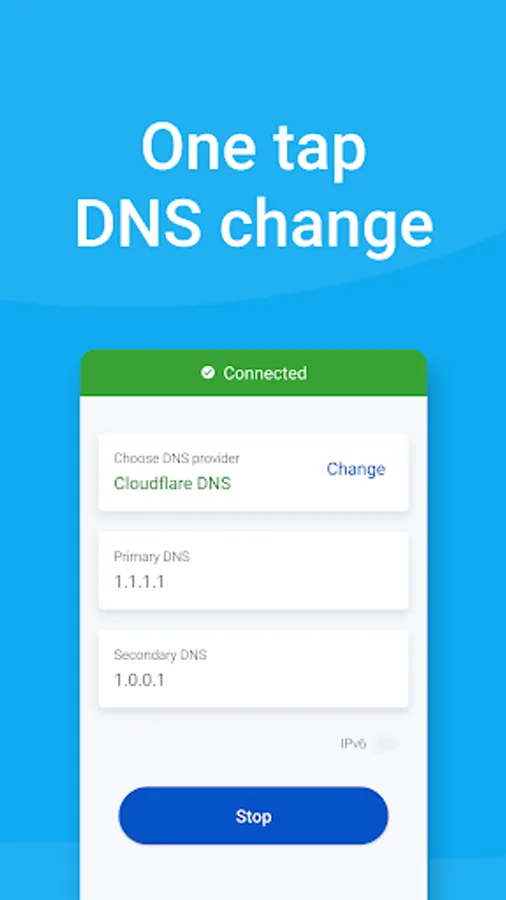 DNS Changer (no root Mobile Data/WIFI) IPV6 | IPV4 app comes with great features that are fast and efficient to use.