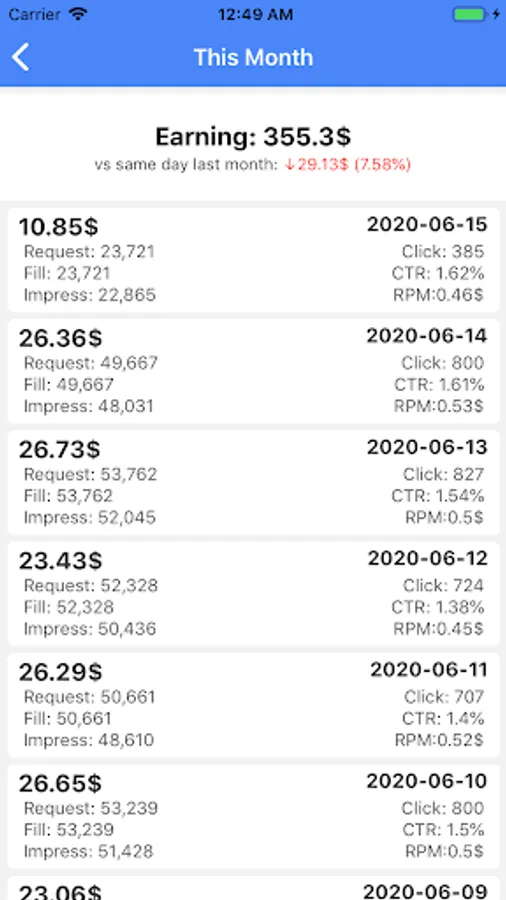 This app is perfect for viewing your daily earnings, and has a beautiful user interface to match. Simple and very easy to use