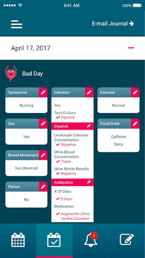 For physicians: The app concisely compiles history of patient UTI symptoms, behaviors and treatments in a manner that can be quickly reviewed.